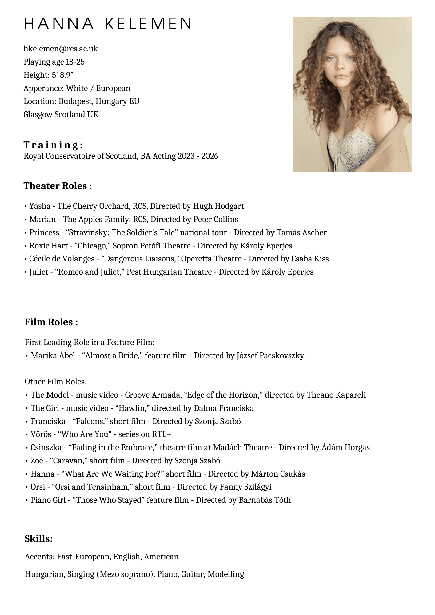 Színésznő és énekes; elkötelezett a film, a színház és a zene világa iránt.